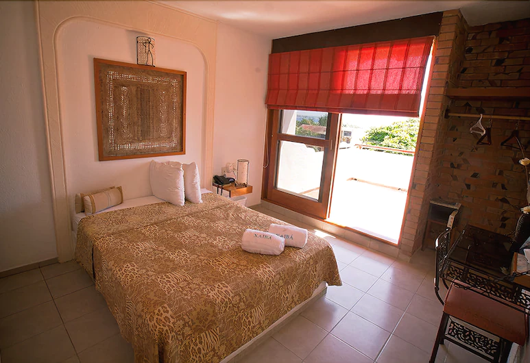 DOUBLE ROOM FOR 2 0 4 PEOPLE 2 QUEEN SITE BEDS, DRESSING TABLE WITH CHAIR, 32 INCH FLAT SCREEN AIR CONDITIONING AND FAN FULL BATHROOM